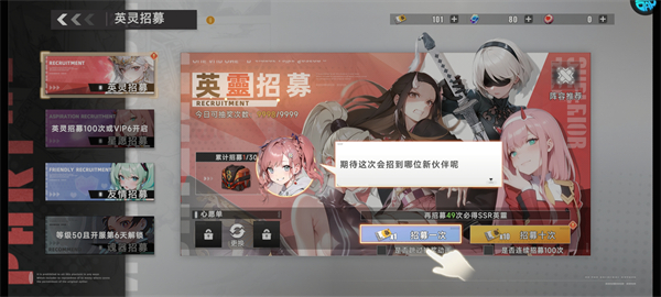 5、可通过招募券抽取新伙伴,累计招募还有保底SSR英灵的福利。