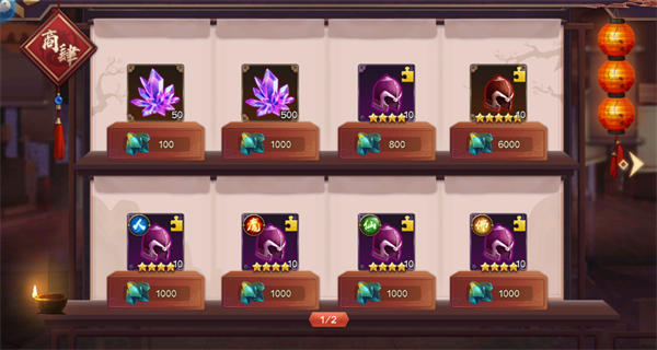 【帮会商肆】 通过帮会首领以及帮会委托获得的帮贡可以在这里兑换您心怡的神将。