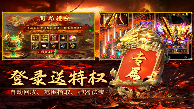 4、登录送特权,自动回收、范围拾取、神器法宝。