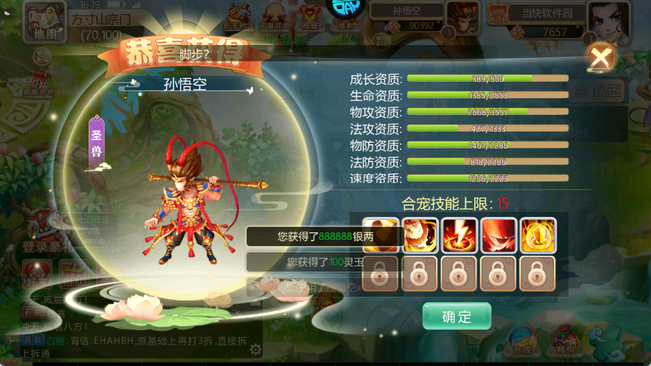 5、新人送战力锦囊:初级精魄*888、宠物经验丹(大)*10、洗髓露*88、金刚锁*3!
