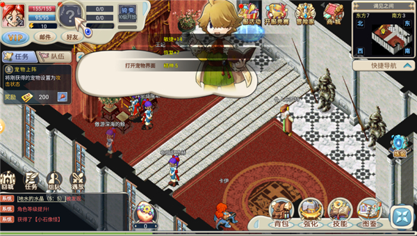 4、打开宠物界面,可以将你的宠物设置为攻击状态,同时游戏还有坐骑系统,需要100级才能开放;