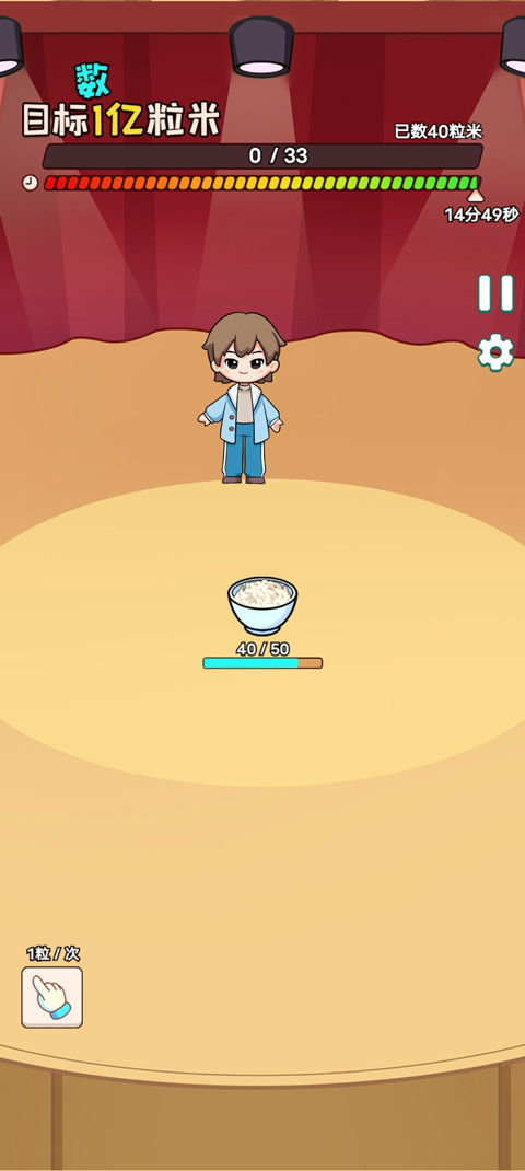 这款《数一亿粒米2》手游看起来挺有意思的,玩法简单但又有挑战性。游戏画风卡通,玩家扮演被选中的主角,帮助老奶奶数米,目标是一亿粒,听起来挺大的,不过通过闯关和升级能力,比如加速数米速度或者增加储米量,可以更快完成任务。