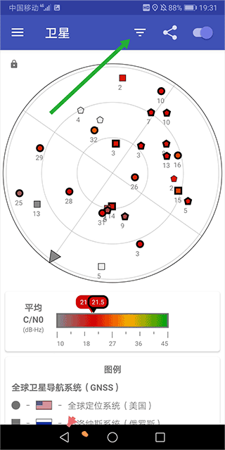 3、用户可以通过其顶部的筛选按钮进行北斗卫星的筛选