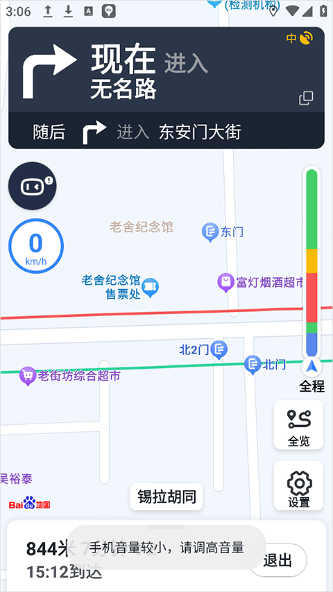 3、然后app就会进入导航页面中开始导航了