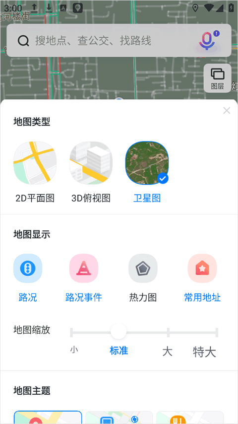 8、app还提供了卫星图、平面图、3d图等地图图层