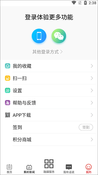 1、首先,打开软件,在融媒服务当中用户可以在这办理各种业务服务;