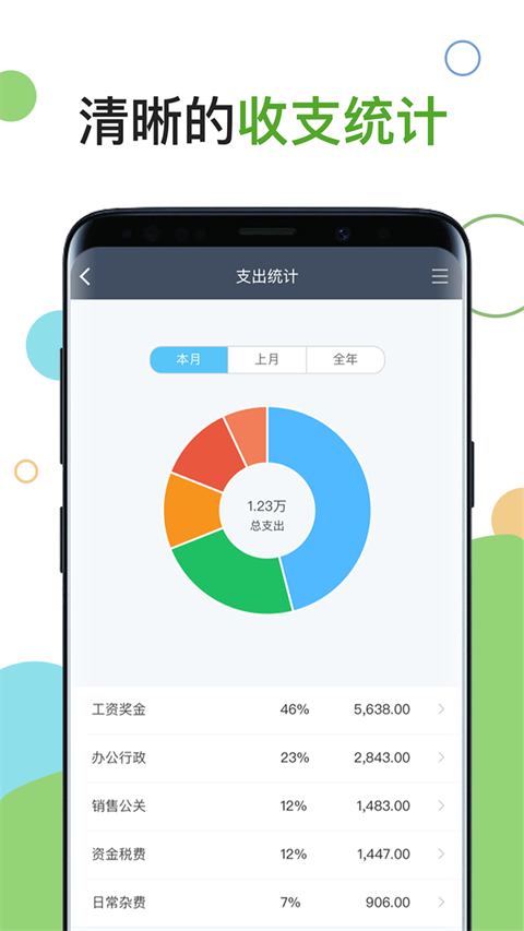 财务记账、收入支出统计、丰富的财务利润报表管理。