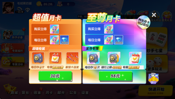 2、点击购买月卡之后就能够解锁银行保险柜功能。