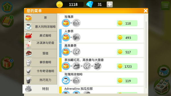 在经营过程中,玩家需要合理安排员工的工作路径,提高效率。比如把糖浆放在香料旁边,因为它们有87个连接点,而蛋糕则应该远离冰箱。这种策略性很强的玩法真的挺少见的,玩起来很有挑战性。游戏中的食谱也非常丰富,茶类、咖啡、冰淇淋、蛋糕等应有尽有,还能解锁各种特别料理,比如莫吉托纸杯蛋糕和巧克力摩卡咖啡。