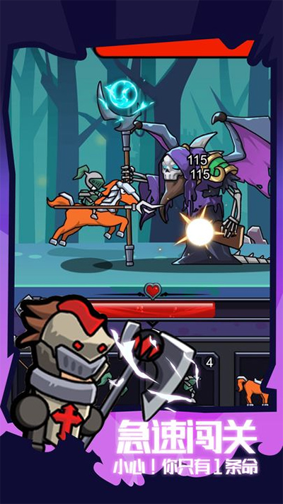 骑士冲冲冲是一款十分有趣的动画风格的冒险类游戏,在这款游戏中玩家可以选择自己喜欢的英雄进行冒险,还可以不断的收集装备,提高自己的武力值。游戏中你可以强化你的装备去不断的提高自己的能力,击败不同的怪物可以去获得不同的材料,而且这里拥有非常的多的角色供玩家选择,保证任何一名玩家都能够找到适合自己的角色。游戏的操作并不是很难,玩上两局都能够熟悉,非常适合玩家度过无聊的时间。快来下载游戏扮演骑士快速的开始你的冒险吧。