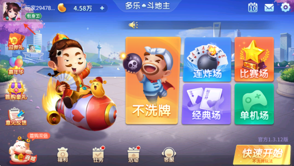 多乐斗地主经典版是一款经典的斗地主手游,玩法丰富,支持多种模式,比如叫分玩法和连炸玩法,还有单机模式适合 offline 玩。游戏里有各种活动任务,比如签到、挑战等,完成任务可以拿到游戏豆,如果豆子用完了还能玩单机场。玩家还可以自己换头像、改名字,挺方便的。