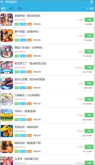 4、里面有着海量的游戏修改目录,找到要玩的游戏,点击下载就可以了。