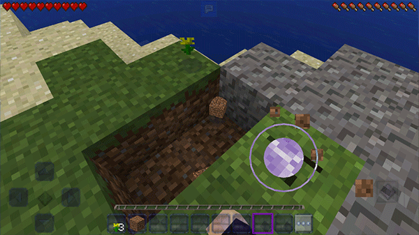 5、点击并长按某一位置,可进行拾取或挖掘,挖掘的物品会在下方进行显示。