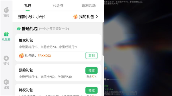 1、进入游戏后,点击首页悬浮球,领取兑换码