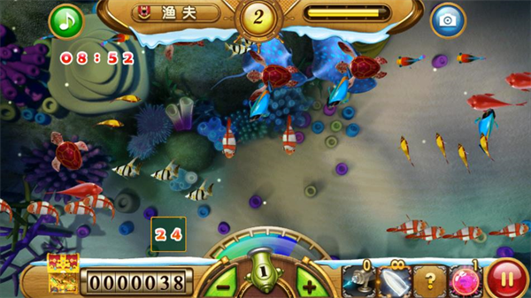 7、打小丑鱼:在小丑鱼钻到炮台下的时候攻击,这样的话,即使玩家没有打中,也可以粘到其他的鱼。