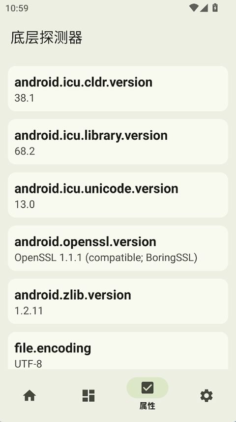 底层探测器app是一款专为安卓用户设计的专业手机系统检测工具,由酷安上的个人开发者精心打造。它能够一键速览手机底层架构及详尽信息,全面检测处理器(CPU)、内存(RAM)、存储、网络、电池、传感器等硬件状态,同时精准呈现系统版本、内核版本、安全补丁等级等关键软件信息。软件支持Treble验证、GSI解析、Mainline探索、APEX分析、system-as-root(SAR)检测及A/B无缝升级等核心功能,帮助用户快速定位硬件问题,无缝升级系统内容。