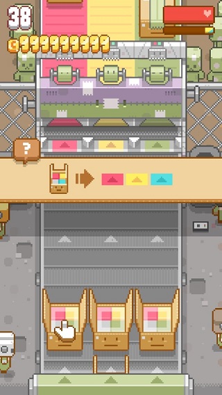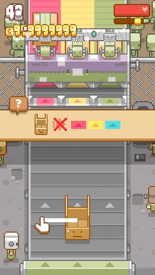关于游戏的实际玩法虽然操作简单,但极其考验玩家的反应力,与思维,在包装的流水线工厂中,你需要将对应颜色的包裹放置在同色的包装通道下,由于货物颜色的杂乱摆放,你要将其放置到正确的位置上,然而这些还是比较简单的,当中出现的各种情况是该游戏挑战的难度重点,将放置的空箱退出流水线,或是点击带有“?”的箱子会触发不同的时间,收集宠物并解锁新的外观,将是这款游戏为你增加的丰富内容。从现在开始,看看你能在最短的时间能把多少盒子送进通道里吧。
