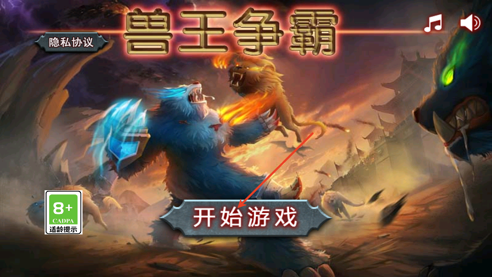 1、在手机上运行兽王争霸无限金币钻石版,打开游戏并开始游戏;