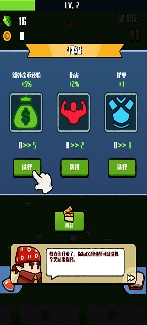 4、每当击退一波敌人的时候都会有相应的补给可以选择。