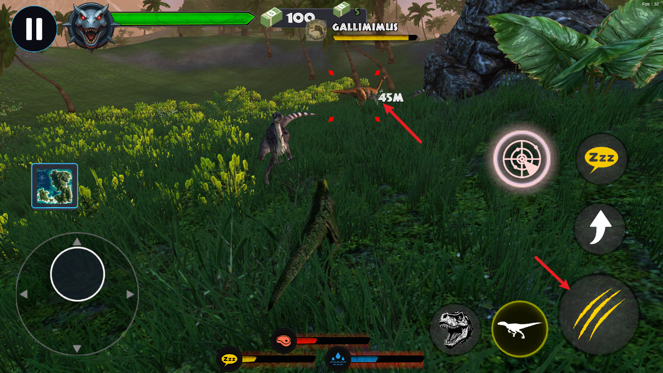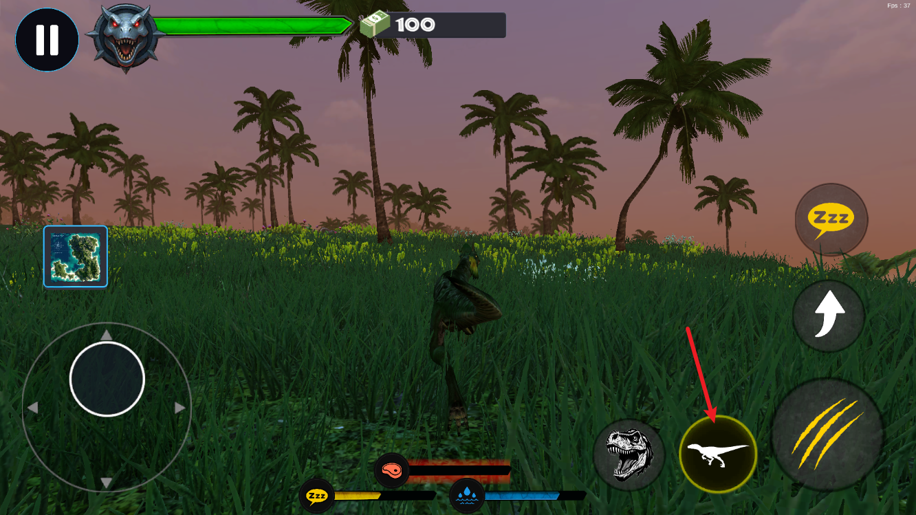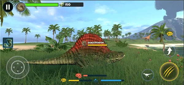 游戏玩法挺有意思的,用摇杆控制恐龙移动,还能加速奔跑、攻击猎物。不过要小心,如果遇到比你大的恐龙可能会被虐得很惨。更新日志里还提到新增了恐爪龙皮肤和一些新机制,比如体力管理,睡觉可以恢复健康,感觉这些细节设计得很用心。