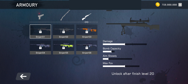 2、多种武器:不同种类的武器带来不同的射击体验!升级你的武器以获得更强大的装备!