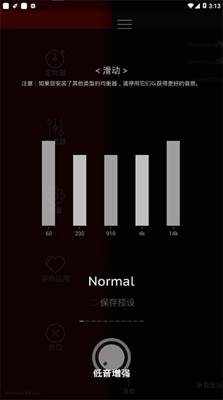 深红音乐播放器app(Crimson Music Player)是一款功能强大的音乐播放器,界面设计得很漂亮,有很多实用的功能,比如均衡器、歌词显示、专辑图片切换等等。最让我觉得贴心的是定时关闭功能,听歌睡着了也不用担心手机一直亮着或者声音一直放着。而且它支持的格式也很多,mp3、MP4、WMA这些主流格式都能播放,还有高品质的APE和FLAC也能解码。