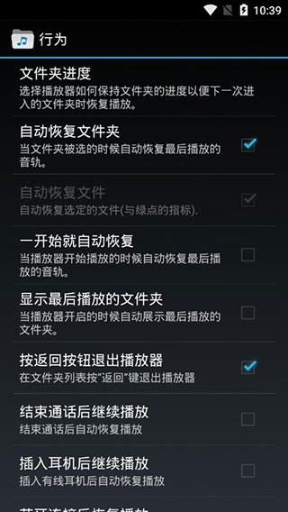 8、支持选择文件夹播放结束时执行的操作、选择拔出耳机时执行的操作