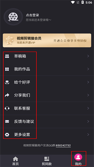2、进入软件首页后用户可以使用软件中的所有剪辑视频功能;
