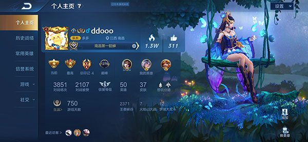 2、编辑个人信息,支持自由选择排名英雄、背景图、荣耀称号、定位地区等信息;
