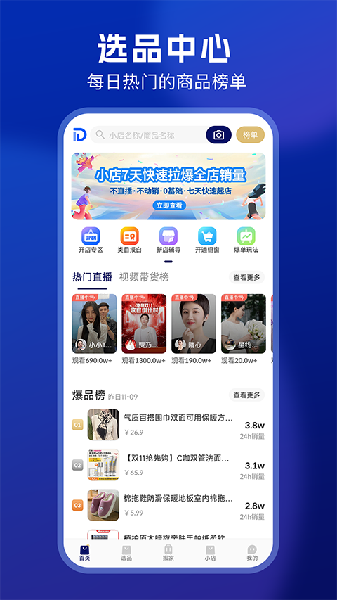 每日商品榜单实时呈现(潜力榜、优质榜、爆品榜)发现爆品商机,让你选品无忧。