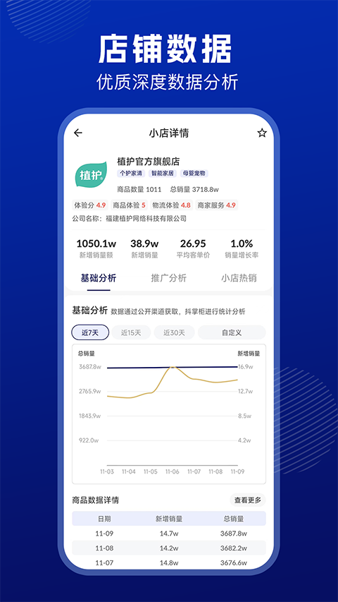 优质小店推荐,小店商品数据一目了然,带你掌握销量秘籍。