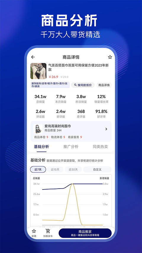2、选品数据丰富,给商家更多选择和参考。