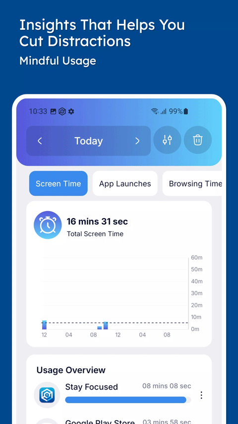 通过提醒和成瘾追踪器(包括屏幕时间追踪器)控制手机成瘾。