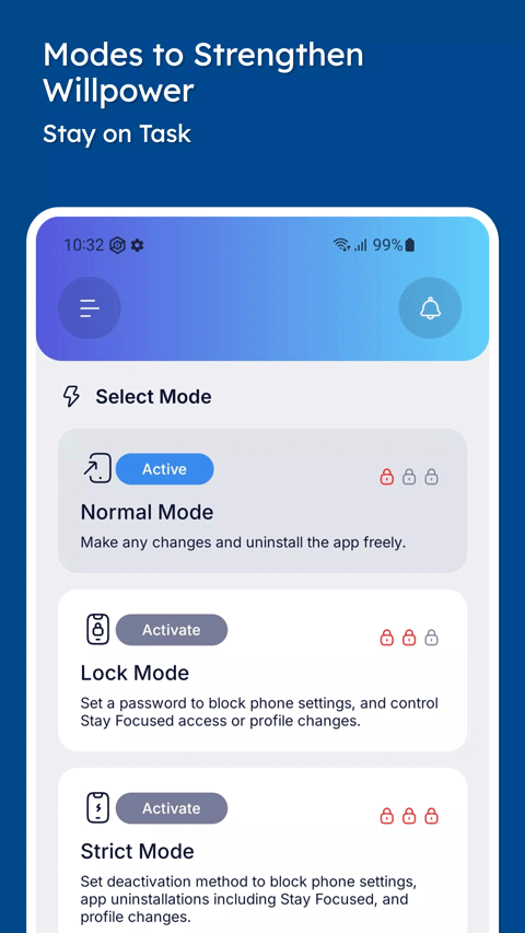 4、严格模式:锁定设置以确保一致性并加强自我控制。