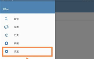 1、打开MDict,在软件的设置中找到mdict额外的词典目录,一般这个目录是手机的SD卡的目录。具体的操作如下: