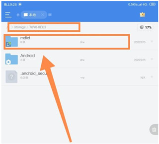 可以看出MDict的额外词库目录为:/storage/7090-0EC3/mdict