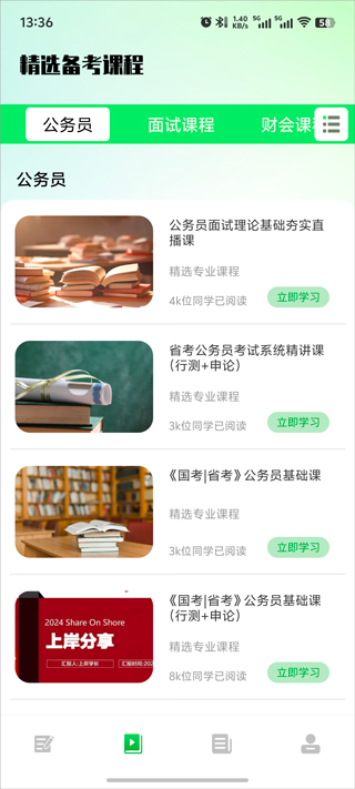 4、另外,app内还有着很多关于公务员考试的视频咨询,用户可选择观看。