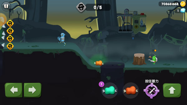 僵尸榨汁机是当下非常火爆的一款休闲益智类手游,以经典的僵尸为题材,不仅拥有精致细腻的游戏画面和蠢萌的人物形象设定,还将经营与冒险的元素相结合,形成了一种全新有趣的玩法,一改往日僵尸的恐怖印象,给你不可思议的全新游戏体验。游戏背景是发生在僵尸病毒大爆发之后的时代,整个画面背景看起来颇有阴暗的气息,游戏的主角并不是人类,而是一个椭圆形的怪物,手拿着铁钩枪去僵尸丛林捕捉各种僵尸。