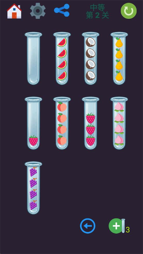 ①点击试管,相同水果可移动