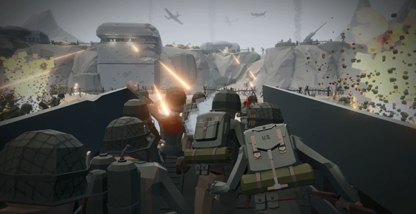 人物比例比较偏大头娃娃的卡通造型,但是身上的细节物品又比较尊重史实,基本是严格按照二战真实的单兵装具设计的,没有发现明显穿越的神剧服装造型。光影效果也采用了有些怀旧色彩的素绘效果,更好的体现了一些年代感。