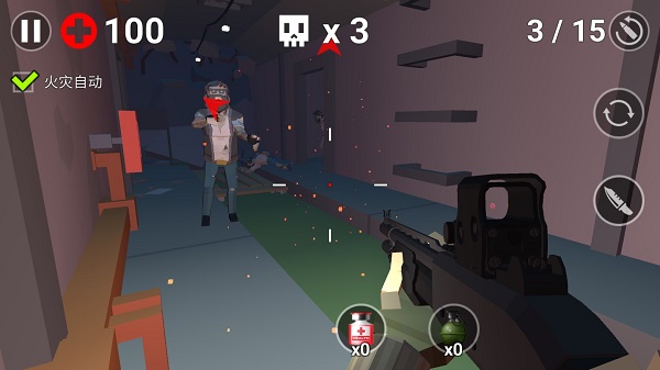 另外,游戏中还有着多种武器让我们随意进行切换战斗,我们必须要去阻挡僵尸的进攻,保卫城市的安全,但是因为画面比较像素化,所以总体的场面看上去不会觉得特别血腥。可以说是适合各个年龄阶段的玩家进行畅玩,不管是用来休闲娱乐还是打发时间,该游戏都可以很好的满足大家的需求,在搭配上那第一人称视角的3D艺术,致力于带给广大玩家沉浸式的冒险体验,可以说是十分的畅爽了。