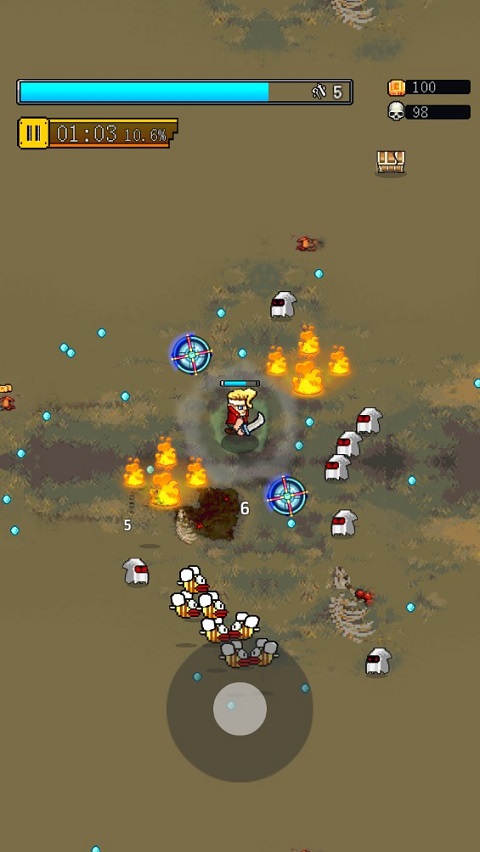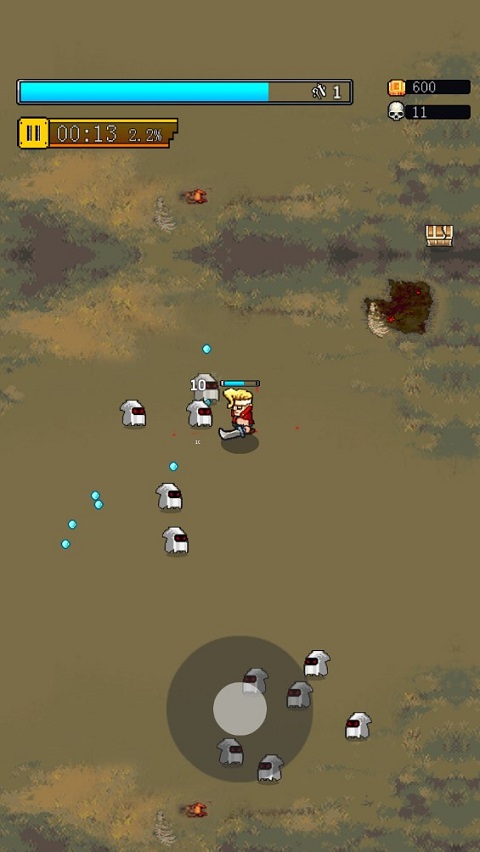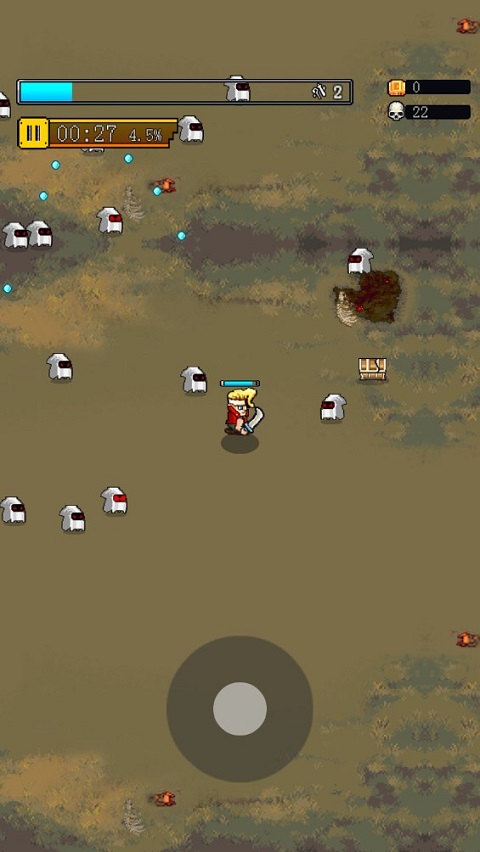 1、游戏模式为闯关制,进入游戏,拖动中心虚拟摇杆可控制英雄移动。