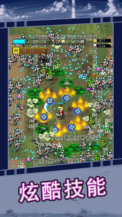 合金勇士生存手游是一款roguelike类闯关游戏,在故事背景中,世界濒临毁灭,危险的丧尸正在攻击整个城市,世界需要英雄,而你刚好在列!游戏中,玩家只需通过走位,消灭丧尸、野兽和骷髅,通过掉落的晶体和能量块,提升角色等级。每提升一级,都有机会挑选技能,不同技能的组合方式,可以最大化英雄战力。即便失败,也没关系,在装备、赋能等战力提升下,可增强角色的生存时长,通过酷炫的战斗特效,亦可满足你的视觉享受。