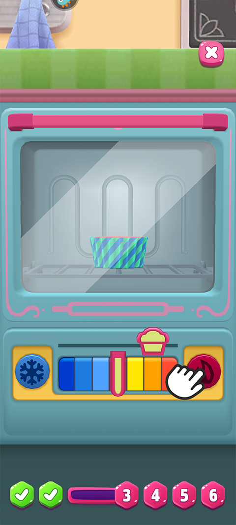 这里雪糕虽然是速冻,但其他的糕点都是需要热处理的,放在处理箱后扳动下面的按钮即可进行温度控制,总体来说并不困难。出炉后会自动放在安吉拉面前等你投喂,你也可以拿起来在它嘴边围绕逗一逗它,看看安吉拉想吃甜点的可爱样子。