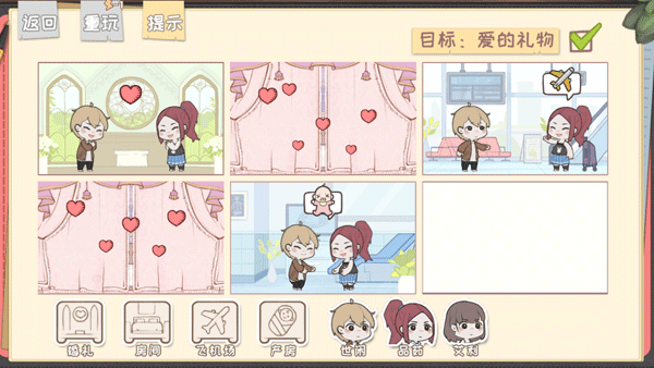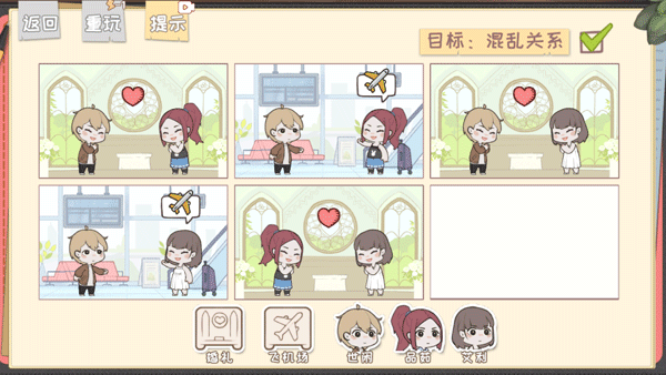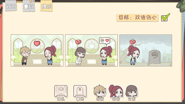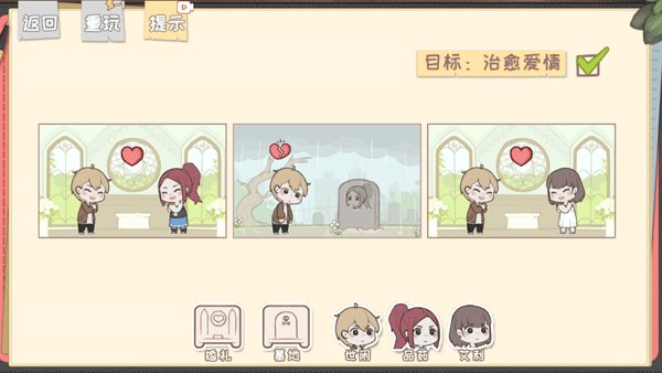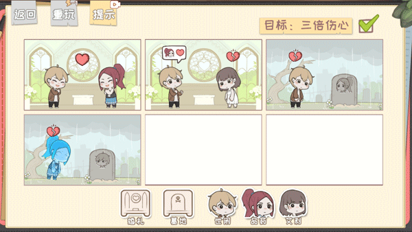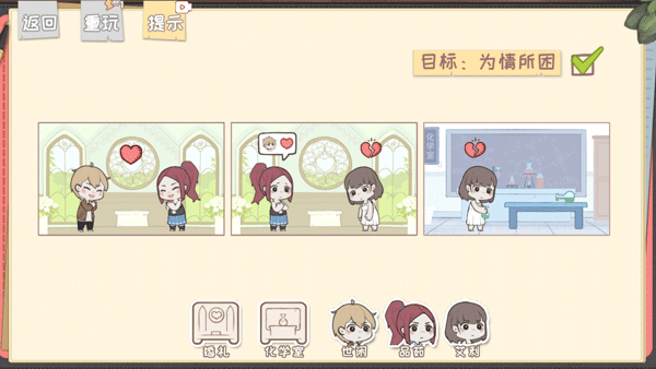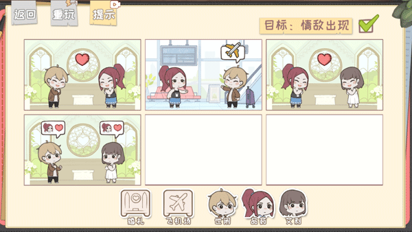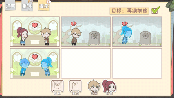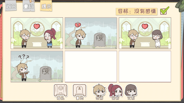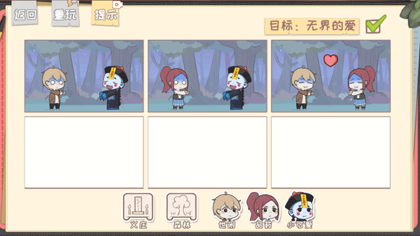 2、部分关卡体验难度会比较大,这时候我们可点击上方“提示”就可以免费获取标准答案,当然答案并不唯一,玩家也可以自行创作更多的正确情节。