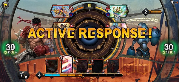 一张行动卡牌被打出后,时间就会暂停,战斗也会进入Active Response阶段。当玩家将打出行动卡牌后,对手能打出自己的行动卡牌来做出响应。