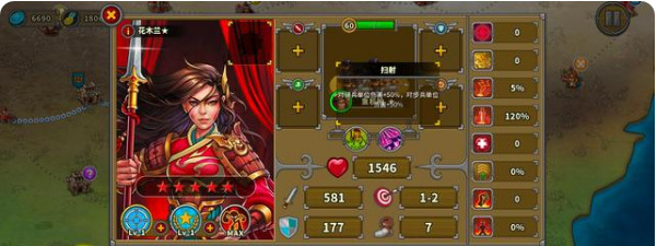 2、花木兰,二号主力,三技能勇猛,攻击敌军100%不被反击,适合先手,打波消耗,当然还是,让织田信长先减攻减防。
