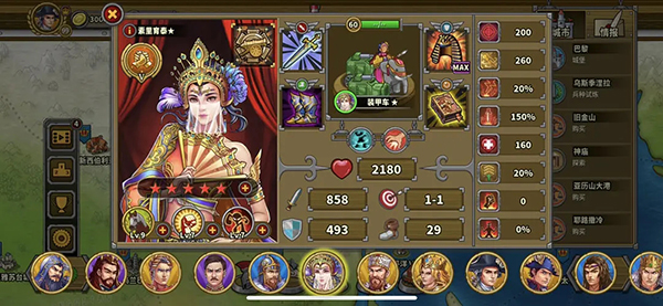 5、后面是后勤了,蒙特祖玛和圣女贞德。蒙特妈祖前期技能很好,一技能治疗大师,周围全体部队 150,光环持续三回合,作用半径2格,前期伤害可观,技能刷的快,450的奶量,很吃香。但是后期奶量跟不上血量的成长。