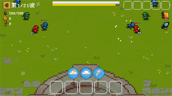 5、每泼抵御怪物攻击即可获得技能,玩家需要再三个技能中选择一个