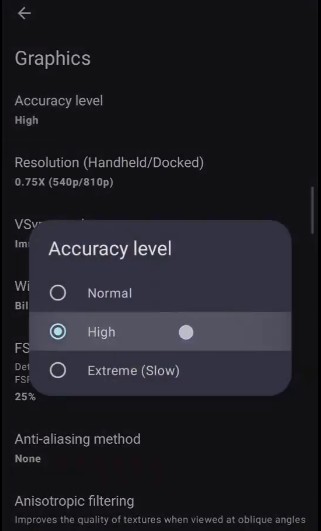 3、分辨率始终设置为较低的0.75倍以获得更高的性能。如果您是低端手机,0.5倍更好。